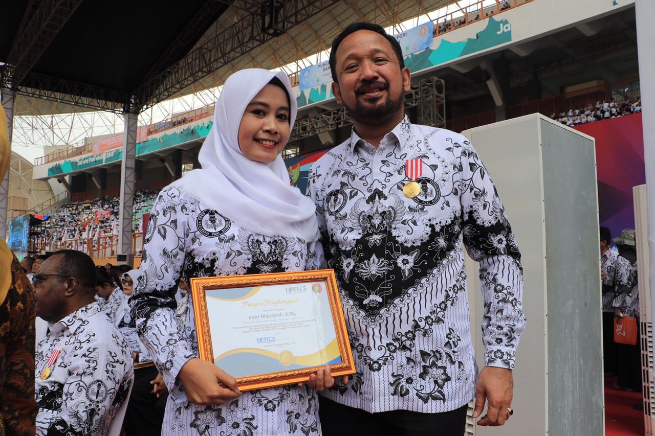 Pada momen bergengsi ini, salah satu perwakilan guru di Kabupaten Ponorogo juga mendapatkan penghargaan atas nama Indri Masruroh, S.Pd, guru pada TK Dharma Wanita Plancungan Ponorogo Jawa Timur, yang mendapatkan penghargaan Anugerah Guru Inspiratif Tingkat Nasional tahun 2019.