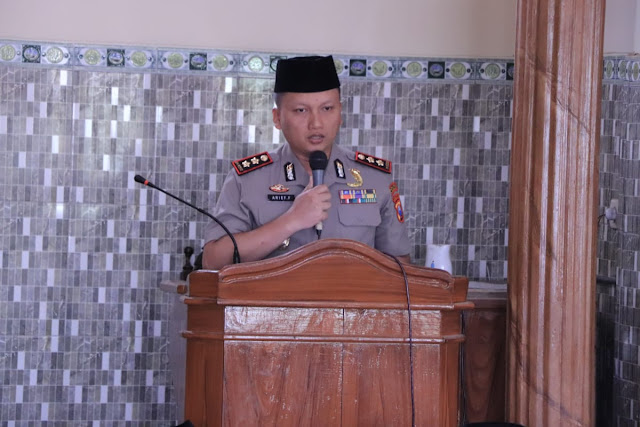 Pada kesempatan tersebut, juga dilakukan penyerahkan cinderamata Oleh Kapolres Ponorogo AKBP Arief Fitrianto kepada ketua Takmir Masjid Al Fatah Desa Tambang Kecmatan Pudak. (Sul).