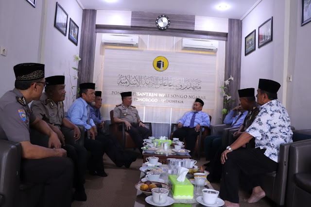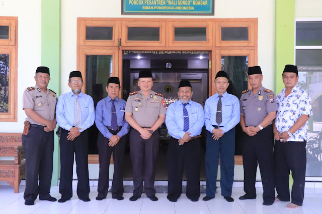 Dalam kunjungannya tersebut, Kapolres Ponorogo AKBP Arief Fitrianto, SH, SIK, MM didampingi Kasat Intelkam Polres Ponorogo AKP Susworo, Kasat Binmas Polres Ponorogo AKP Bambang Rulijanto, S.Sos, Kapolsek Siman AKP Dwi Agus Cahyono, SH, dan KBO Binmas H. Ipda Anwar Fatoni, SH disambut oleh pimpinan pondok pesantren Wali Songo Ngabar Drs. KH. Moh.Ihsan M.Ag, Heru Saiful Anwar MA dan KH. Moh.Tholhah, S.Ag.