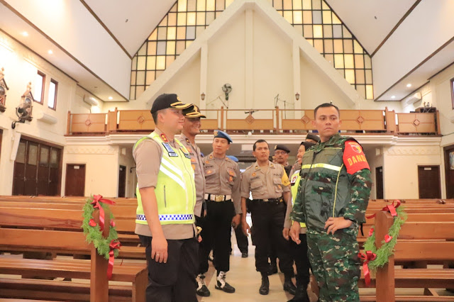 Kapolres Ponorogo AKBP Arief Fitrianto bersama Dandim 0802/ Ponorogo Letkol Inf Sigit Sugiharto saat pengecekan disejumlah gereja