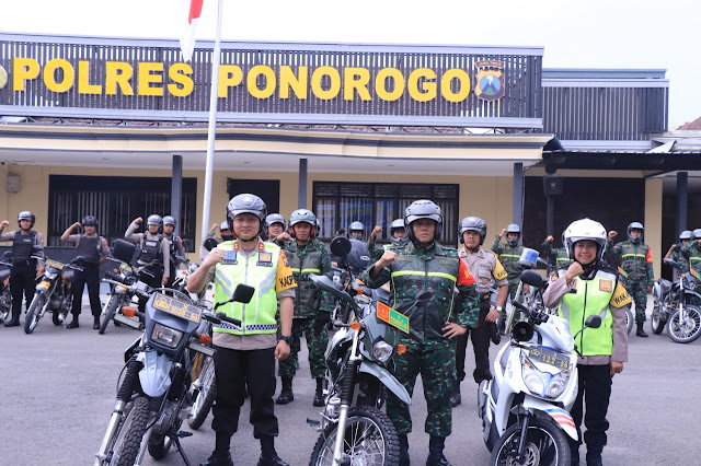 Jelang Nataru Kapolres Ponorogo Bersama Dandim 0802 Ponorogo Gelar Patroli Dan Pengecer Pos Pam