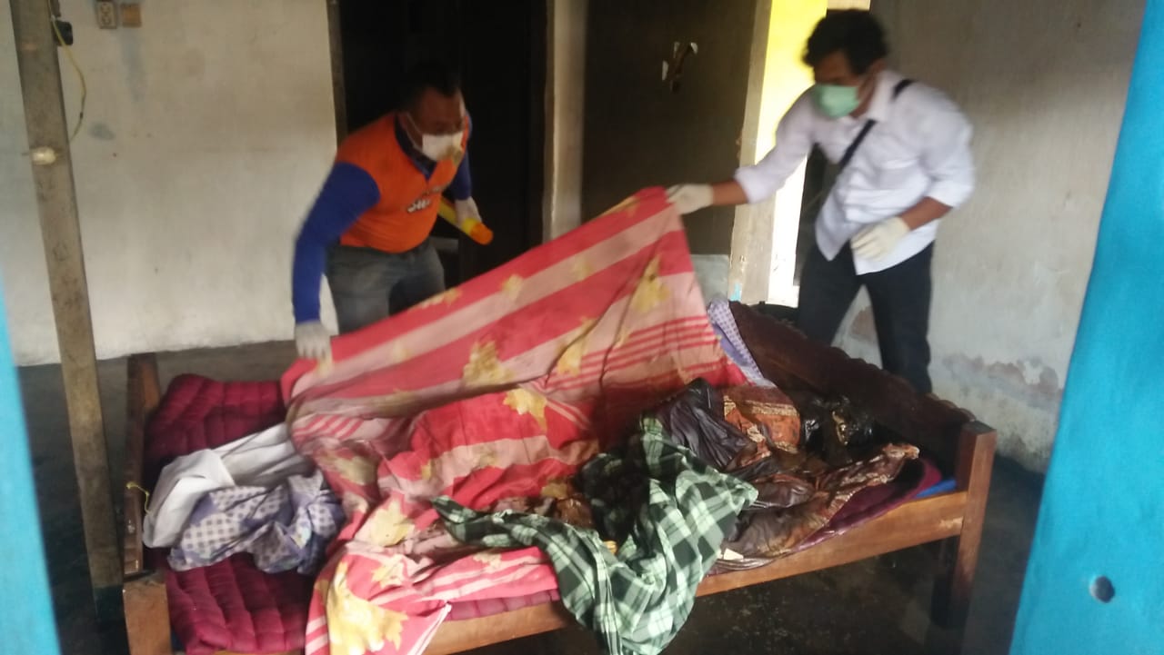 Merasa curiga, akhirnya warga setempat melakukan pengecekan kerumah tersebut, seusai anak korban meninggalkan rumah. Karena anak korban yang selama ini mengalami gangguan jiwa, tidak memperbolehkan siapapun masuk dalam rumahnya.