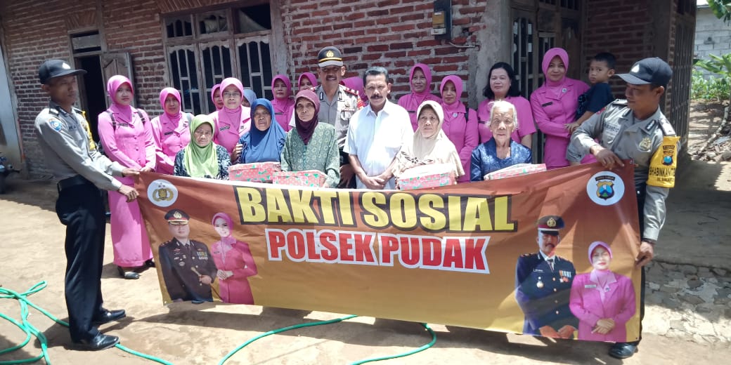 Kapolsek Pudak bersama Bhayangkari ranting Pudak melakukan bakti sosial dengan memberikan bantuan kepada warga masyarakat yang kurang mampu