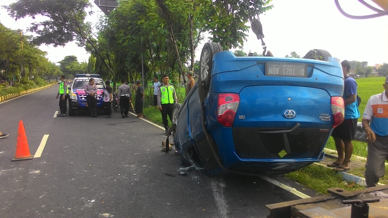 Madiun, Seputarkita – Kembali terjadi laka lantas di jalan ring road Kota Madiun pada Kamis 02/01/2020 sekitar pkl 07.00 Wib. Atas kejadian tersebut mengakibatkan kendaraan mobil Etios warna biru nopol D 1021 ABM rusak parah karena terbalik usai menghantam median jalan.