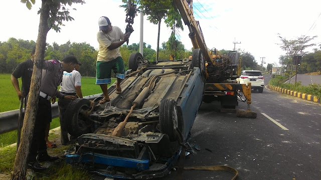 Kondisi Mobil Setelah Menabrak Median Jalan Hingga Terbalik