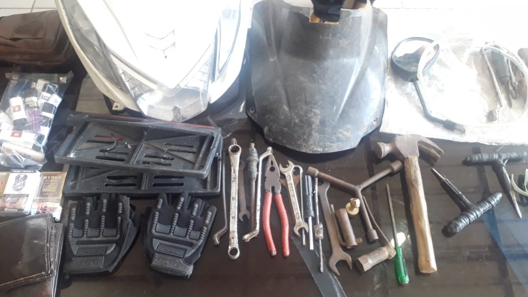 Selain itu, puluhan alat kejahatan berbagai jenis terdiri dari 3 linggis kecil yang telah di modifikasi, 2 kunci letter T dan belasan kunci ring, kunci pas dan 4 sayap sepeda motor serta spion motor.