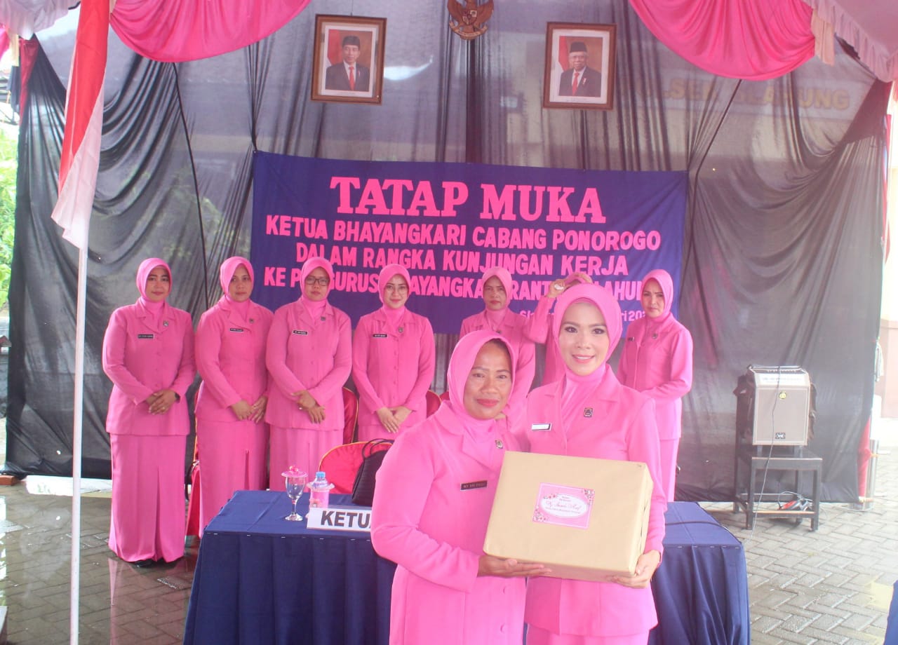 Pada kegiatan tersebut juga dilakukan penyerahan cinderamata dari Ketua Bhayangkari Cabang Ponorogo kepada Ranting Bhayangkari Slahung.(Sul)