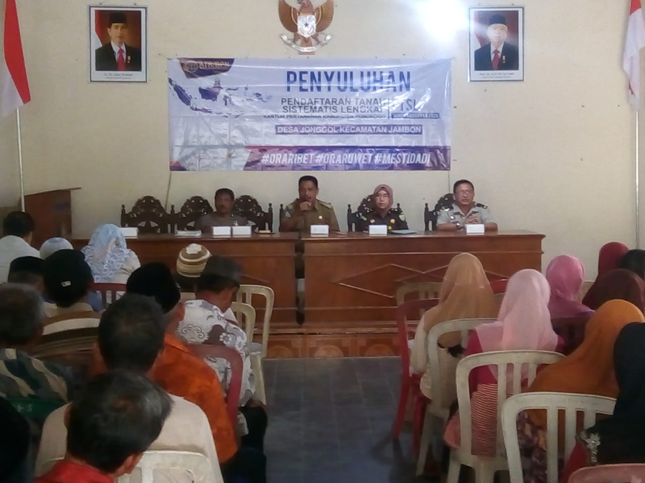 Kepala Desa Jonggol Supriyadi saat dikonfirmasi menyampaikan, dalam rangka untuk mendukung, menyukseskan dan menindaklanjuti program sertifikat tanah bagi masyarakat, Pemdes Selur bersama Badan Pertanahan Nasional, Kejari dan Polres Ponorogo melakukan sosialisasi program Pendaftaran Tanah Sistematis Lengkap (PTSL) kepada warga masyarakat.