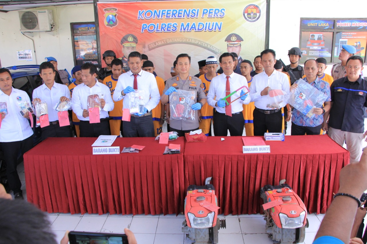 Ada sekitar 11 kasus yang berhasil diungkap dengan 26 tersangka yang berhasil diamankan oleh Polres Madiun pada akhir tahun 2019 hingga awal tahun 2020 ini. Saat digelar konfrensi pers Jumat (17/1), Kapolres Madiun AKBP Ruruh Wicaksono dengan didampingi Kasat Reskrim AKP Logos Bintoro, Kasat Narkoba AKP Agung Darmawan dan pejabat lainnya menjelaskan, “Konferensi Pers kali ini beda, ya, rekan-rekan. Kali ini jumlah tersangka dan barang buktinya bisa dikatakan banyak,” jelas AKBP Ruruh Wicaksono.
