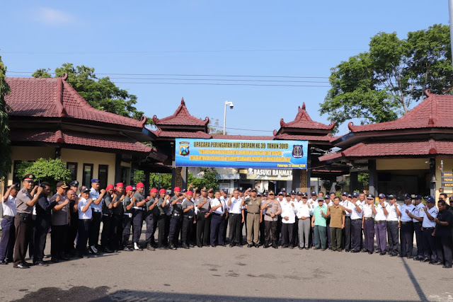 Kapolres Ponorogo AKBP Arief Fitrianto, SH, SIK, MM, dalam sambutannya membacakan amanat Kapolri menyampaikan marilah kita senantiasa mengucapkan puji dan syukur ke hadirat Allah SWT, Tuhan Yang Maha Kuasa, karena atas limpahan rahmat dan karunia-Nya, pada hari ini kita dapat mengikuti Upacara Peringatan Hari Ulang Tahun Ke-39 Satuan Pengamanan Tahun 2019, dalam suasana yang penuh khidmat.