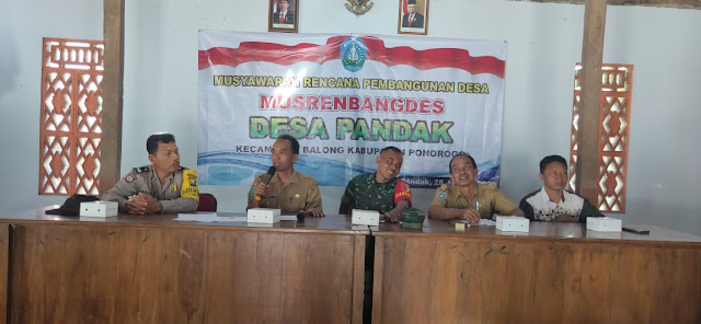 Ponorogo, Guna menyerap aspirasi, usulan dan harapan warga masyarakat sebagai wujud perencanaaan pembangunan partisipatif, Pemerintah Desa Pandak Kecamatan Balong Kabupaten Ponorogo menggelar MusrembangDes atau Musyawarah Rencana Pembangunan Desa di aula balai desa setempat.