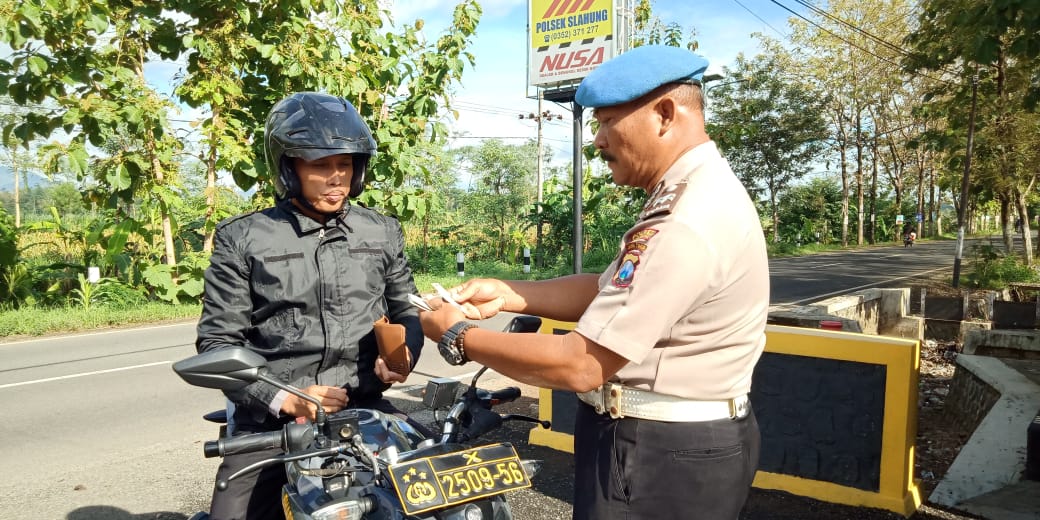 Kapolsek Slahung AKP Paidi, SH saat di melalui Kanitprovis Aiptu Listyo Herlianto menyampaikan,Pemeriksaan diawali dengan kelengkapan surat-surat kendaraan, baik pribadi maupun kendaraan dinas, yang dilakukan di pintu gerbang masuk Mapolsek Slahung.