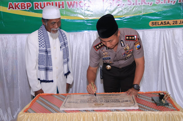 Madiun, Seputarkita – Polres Madiun memberikan bantuan tempat wudhu di Masjid Jami’ Djahrul ‘Arifiyyah di Dusun Kaneman, Desa Kare, Kecamatan Kare, Kabupaten Madiun. Tempat wudhu tersebut diresmikan langsung oleh kapolres Madiun AKBP. Ruruh Wicaksono,S.I.K.,S.H.,M.Hum. Selasa 27/01/2020