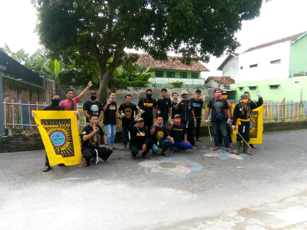 Ponorogo, Seputarkita – Tidak ingin lingkungannya terpapar virus Corona atau Covid 19, puluhan pendekar dari Persaudaraan Setia Hati Tunas Muda Winongo (PSHTMW) Sub Ranting Tonatan Kota Ponorogo melakukan penyemprotan disinfektan langsung ke rumah-rumah warga, Sabtu (28/3).