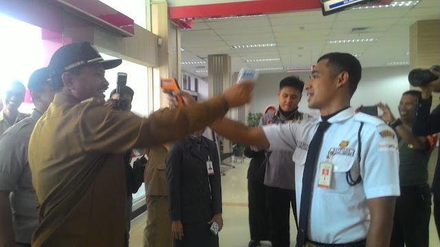 Walikota Kota Madiun Drs.H.Maidi MM.MPd. bersama rombongan saat sidak di salah satu Bank di Kota Madiun