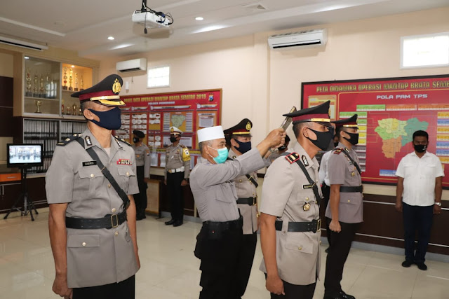 “Kepada pejabat baru AKP Handi Septiadi, SH, SIK dan Iptu Yudi Kristiawan, SH, saya ucapkan selamat dating dan selamat bertugas. Segera menyesuaikan diri dengan kharakertistik wilayah penugasan dan lakukan pemetaan kerawanan-kerawanan yang ada di wilayah yang berpotensi menimbulkan gangguan Kamtibmas, maupun keresahan masyarakat. Besar Harapan saya dengan kemampuan, pengalaman tugas dan keahlian yang pejabat baru dimiliki kiranya dapat menjadi bekal untuk diimplementasikan dalam tugas baru yang diemban, “pungkasnya.(sul)