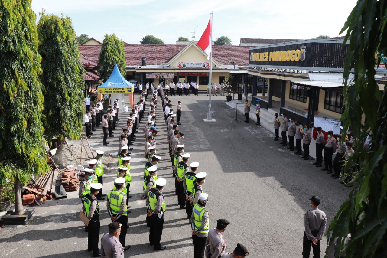 “Terima kasih atas pelaksanaan tugas yang telah dilaksanakan dengan baik sehingga kegiatan masyarakat di wilayah Kabupaten Ponorogo dapat berjalan aman dan kondusif. Jaga kesehatan masing – masing anggota sehingga dapat menjalankan tugas dengan baik dan lancar. Apalagi kemarin telah resmi diumumkan bahwa di Kabupaten Ponorogo yang positif Covid-19 sejumlah 3 orang, “kata Kapolres Ponorogo AKBP Arief Fitrianto.