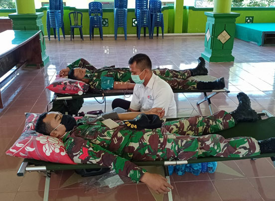 Pihak PMI sangat berterima kasih kepada Koramil 0804/01 Magetan yang telah mendonorkan darah disaat PMI kesulitan mencari pendonor di mewabahnya virus corona. ( R 01 )