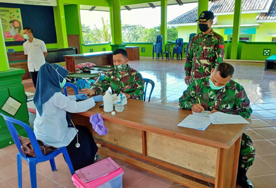 Magetan. Seputarkita – Ditengah wabah corona Koramil 0804/01 Magetan dan Pos Ramil Ngariboyo Kodim 0804 Magetan ,Polsek dan Aparat Pemerintah gelar donor Darah, Cegah Kekurangan Stok Darah di PMI Magetan.