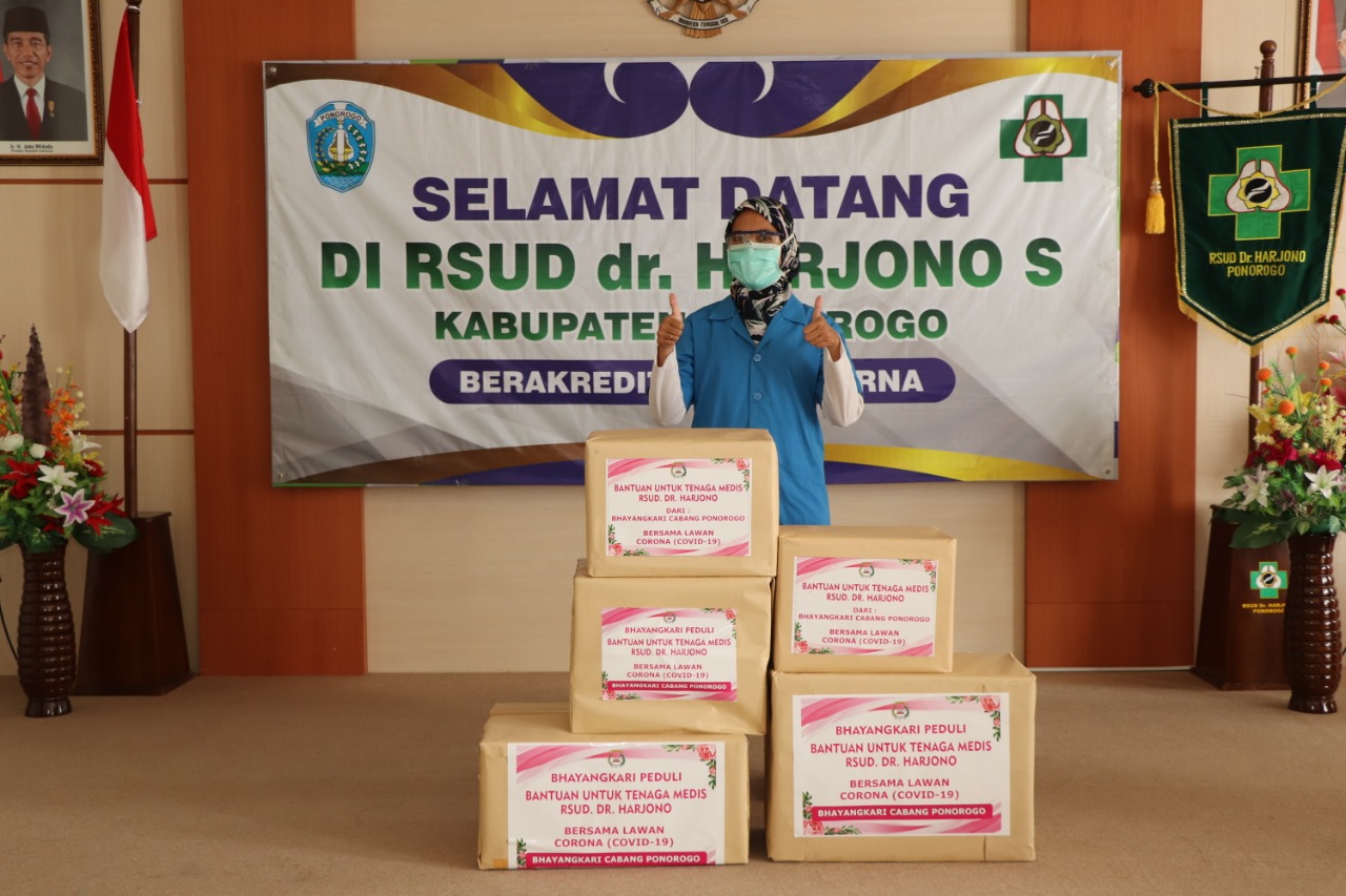 Ketua Bhayangkari Cabang Ponorogo Inanda Arief menyampaikan, pemberian bantuan tersebut sebagai bentuk dukungan dan apresiasi kepada tenaga medis RSUD. Dr. Hardjono Kabupaten Ponorogo, yang tengah berjuang menangani serta merawat pasien Covid 19.