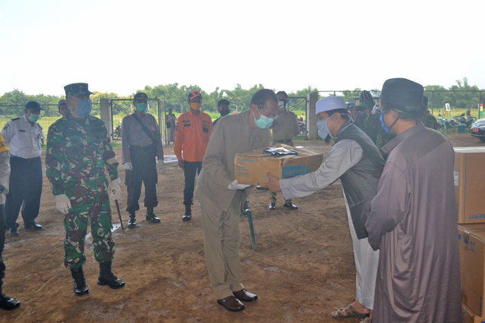 Magetan, Seputarkita – Dandim 0804/Magetan Letkol Czi Choman Jumei Arisandy, SE dampingi Bupati Magetan Suprawoto tinjau proses pengecekan kesehatan, dan pemulangan para santri sekaligus penyerahan bantuan masker dan hand sanitizer di komplek pacuan kuda Ponpes Al Fatah Temboro Kecamatan Karas, Kabupaten Magetan. Senin(13/4/2020)