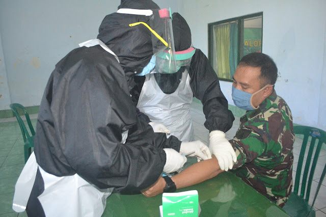 Seiring ditetapkannya Magetan sebangai zona merah penyebaran covid-19 di Jawa Timur, Kodim 0804/Magetan bekerjasama dengan Denkesyah 05.04.01 Madiun mengelar rapid test bagi prajuritnya dalam rangka untuk menjaga keamanan, kesehatan dan keselamatan.