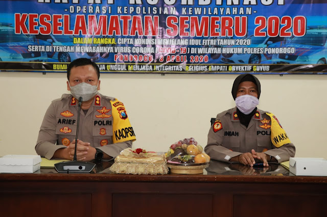 AKBP Arief Fitrianto menambahkan, dalam hal ini Polri tidak diperbolehkan untuk melarang masyarakat untuk mudik, namun diharapkan Polri menghimbau kepada masyarakat di Kabupaten Ponorogo yang memiliki keluarga di luar kota untuk tidak mudik demi memutus rantai penyebaran virus Covid 19.