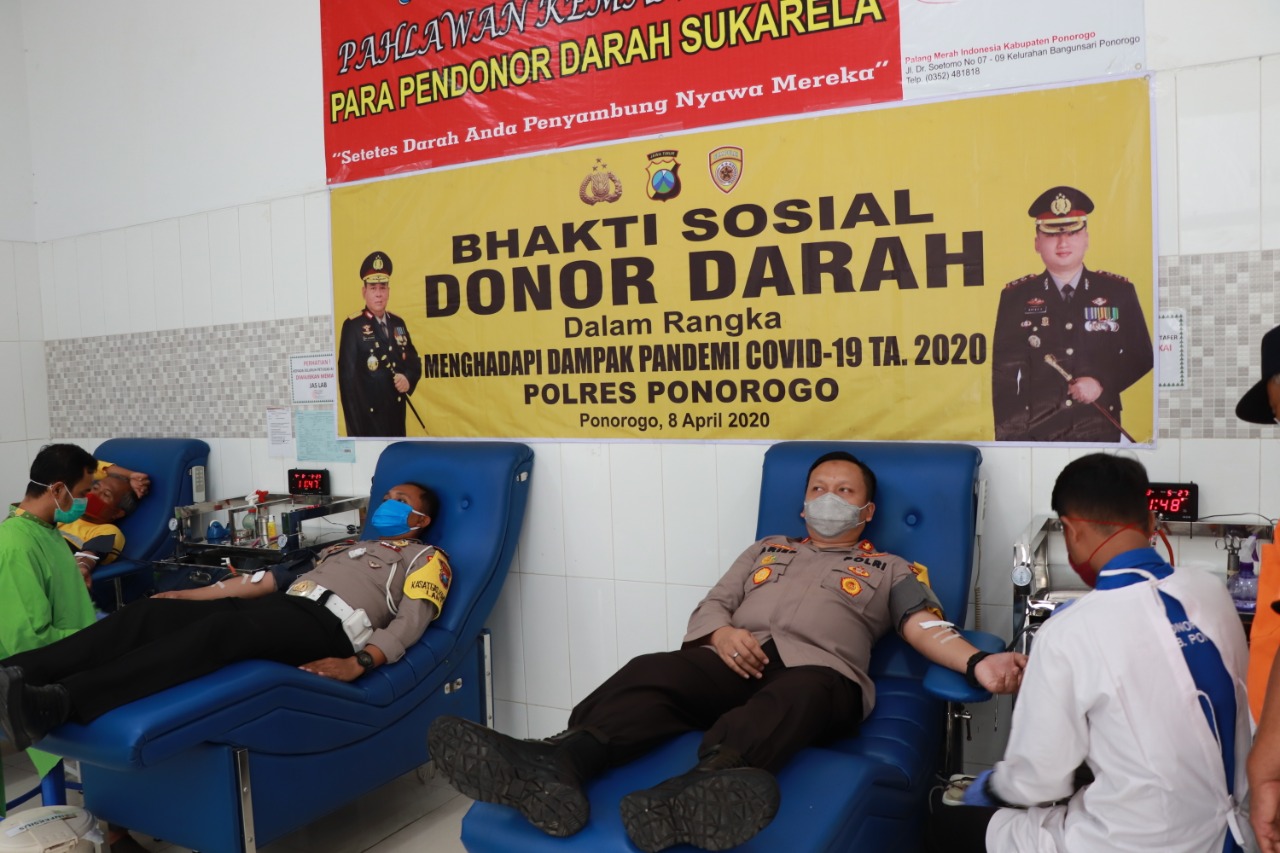“Polres Ponorogo bekerjasama dengan PMI melaksanakan bakti sosial donor darah, karena kita sadari bahwa saat ini mewabahnya pandemik virus Corona atau Covid 19 menjadikan stok darah di PMI akan menurun. Untuk itu, kita dari Polres Ponorogo tergerak untuk berpartisipasi aktif melakukan donor darah, “kata Kapolres Ponorogo AKBP Arief Fitrianto.