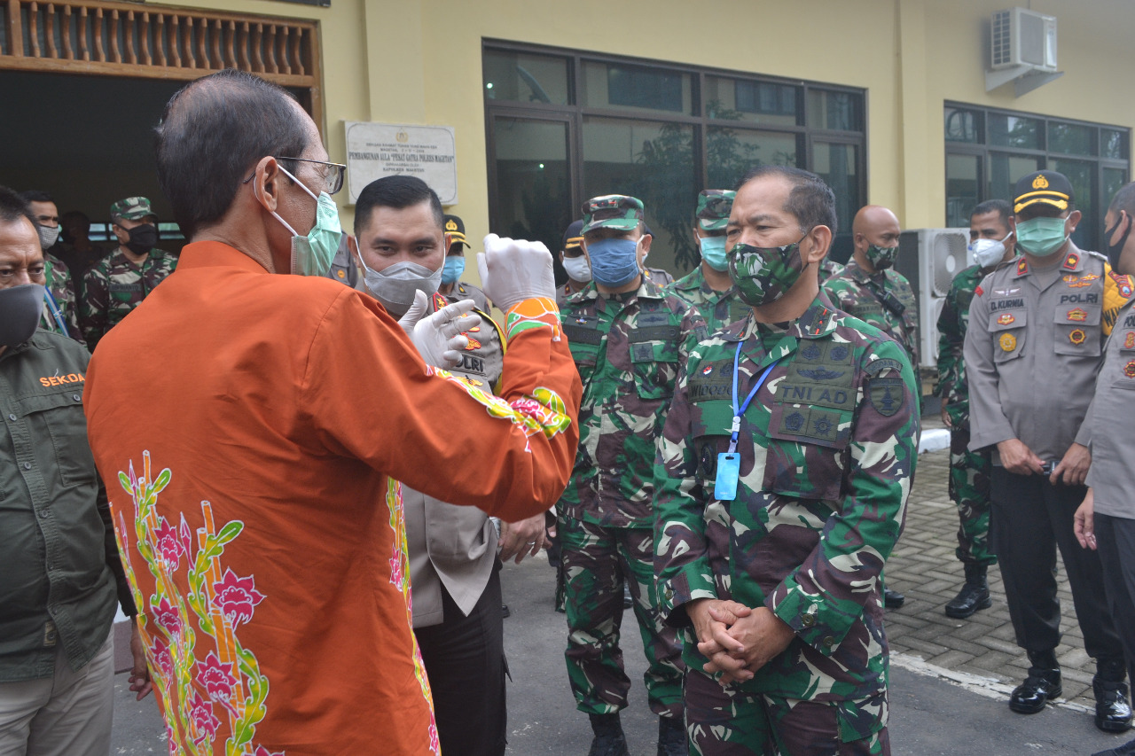 Magetan, Seputarkita – Dandim 0804/MagetanLetkol Czi Chotman Jumei Arisandy, SE damping kunjungan kerja Pangdam V/Brw Mayjen TNI Widodo Iryansyah, S.Sos., M.M, Kapolda Jatim, Sekda Provinsi Jawa Timur di desa Temboro, Kec. Karas, Magetan, Jawa Timur. Kamis(21/5/2020)