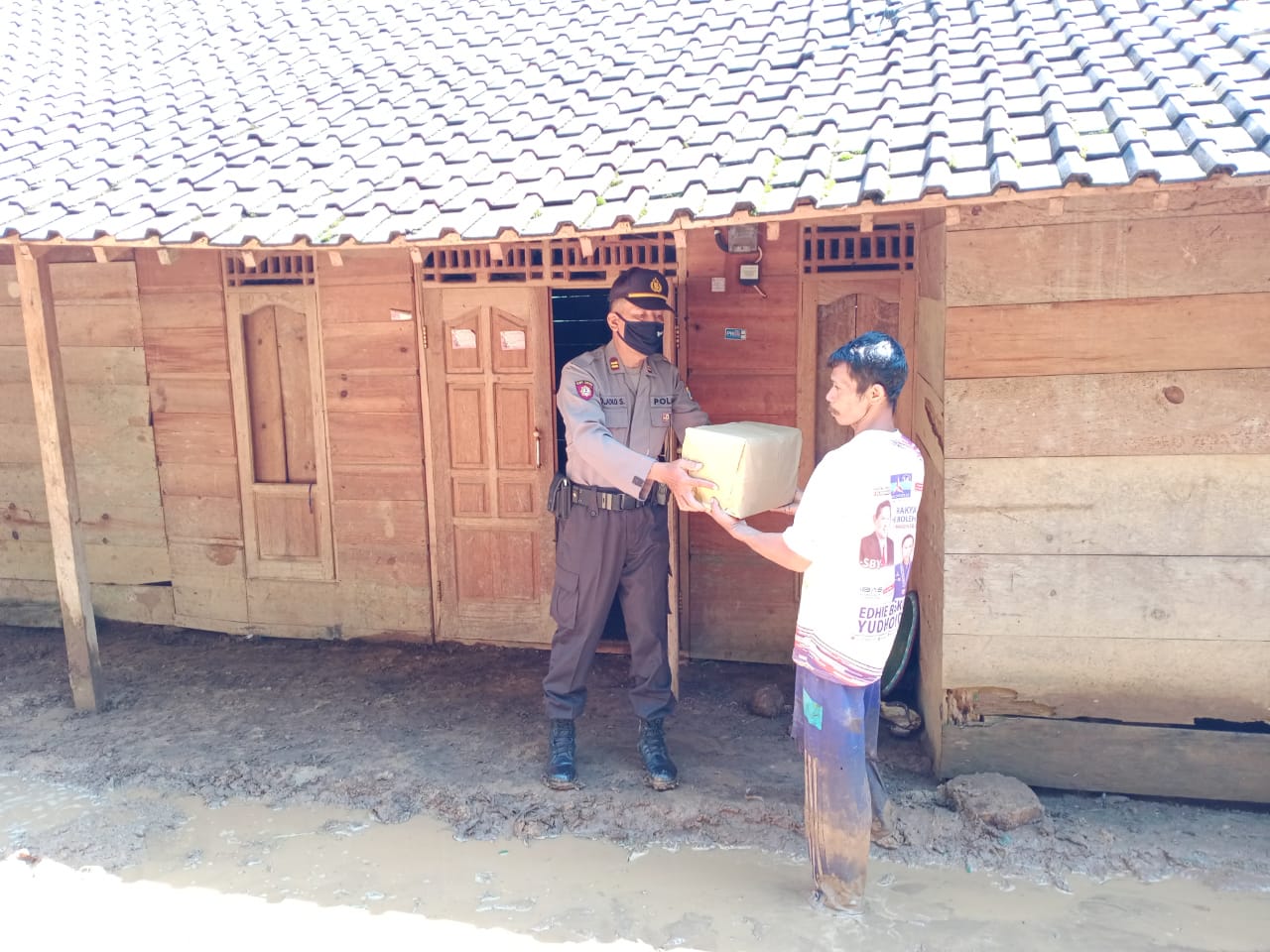 Ponorogo, Seputarkita – Kapolsek Pudak Iptu Joko Santoso bersama anggota melakukan bakti sosial dengan memberikan bantuan kepada keluarga korban bencana tanah longsor di Dusun Sunten Desa Banjarejo Kecamatan Pudak Kabupaten Ponorogo, Minggu (17/5).