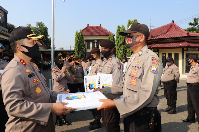 Kapolres Ponorogo AKBP Arief Fitrianto saat memberikan penghargaan kepada anggota