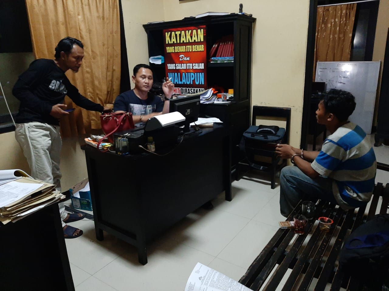 Lebih lanjut AKP Benny Hartono mengatakan, selain mengamankan pelaku, petugas juga mengamankan barang bukti berupa 1 buah tas merk ROBINMAY warna merah yang berisikan uang sejumlah Rp. 952.000, 1 buah senter, 1 buah masker kain warna hitam, 1 buah dompet warna hitam merk ANASUI, 1 Unit sepeda motor merk suzuki NOPOL AE 2123 WY, 1 buah kunci kontak sepeda motor merk Honda, 1 buah celana jeans EXPOSE warna biru, dan 1 buah kaos oblong warna abu abu garis biru.