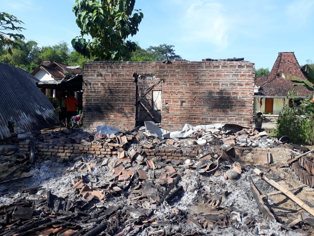 Ponorogo, Diduga akibat konsleting, sebuah rumah milik Sodi (75) warga Desa Duri Kecamatan Slahung, Kabupaten Ponorogo, mengalami kebakaran hingga meludeskan isinya dan menyisakan bangunan, Selasa (16/6) sekitar pukul 01.00 wib.