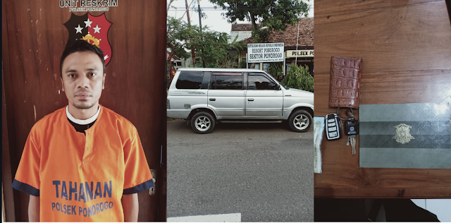 Dari informasi yang dihimpun, pengungkapan kasus penipuan dan penggelapan tersebut berdasar dari laporan korban warga jalan Mangga Kelurahan Keniten Ponorogo. Kejadian berawal ketika pelaku pada hari Sabtu (23/5) sekitar pukul 12.00 wib datang meminjam satu unit mobil Isuzu Phanter bernopol AE 1173 SC kepada korban dengan jangka waktu selama satu minggu untuk keperluan lebaran ke Jogjakarta.