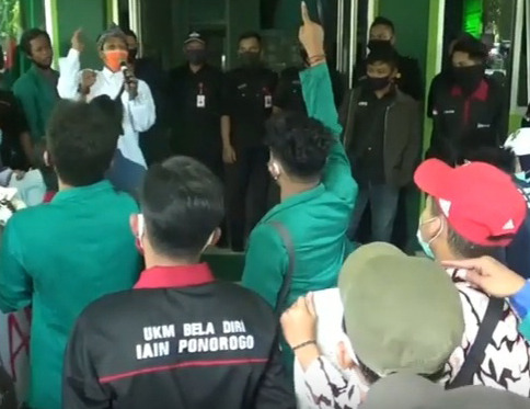 Pihak Rektor IAIN Ponorogo akhirnya merespon unjuk rasa, dengan melakukan aundensi dengan sejumlah perwakilan mahasiswa dengan menyepakati sejumlah point diantaranya adanya pemotongan Uang Kuliah Tunggal (UKT) semester Gasal sebesar 15 persen, memperpanjang masa pembayaran Uang Kuliah Tunggal (UKT) yang semula dari tanggal 16 Juli 2020 menjadi 3 -24 Juli 2020, dan siap menyusun serta menerbitkan pedoman pembelajaran daring dimasa pandemi dengan kurun waktu maksimal H -14 hari sebelum pembelajaran semester gasal 2020/2021 dimulai.(sul)