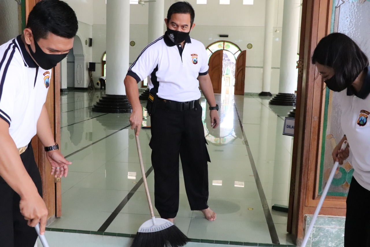 Sebelum pelaksanaan kerja bhakti dilaksanakan apel di halaman Mako Polres Ponorogo, dilanjutkan pembagian sektor Korvei diantaranya di nasjid Agung RMAA Cokronegoro Ponorogo jalan Diponegoro, Gereja Santa Maria jalan Gajah Mada Ponorogo dan Taman Makam Pahlawan “Wira Patria Paranti” jalan Pahlawan Kelurahan Bangunsari Ponorogo.