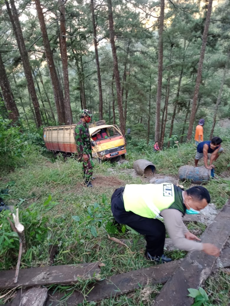 AKP Suroso menambahkan, akibatnya kendaraan truck tersebut tidak bisa dikendalikan oleh pengemudinya hingga masuk ke jurang sedalam 25 meter yang mengakibatkan truk rusak parah bagian depan.