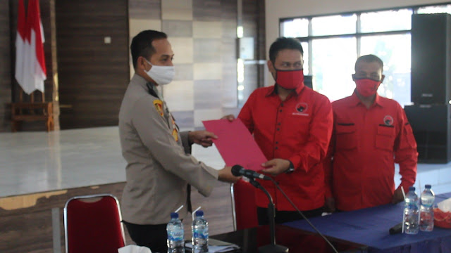 Ketua DPC PDI Perjuangan menyerahkan Laporan langsung kepada Kapolres Magetan