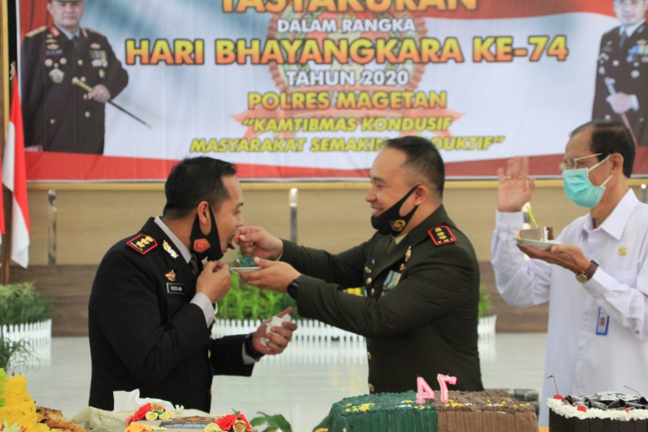 “Do’a restu dari keluarga besar Kodim 0804/Magetan untuk Polres Magetan, “Sekali lagi saya ucapkan selamat hari Bhayangkara yang ke-74,” ujarnya.