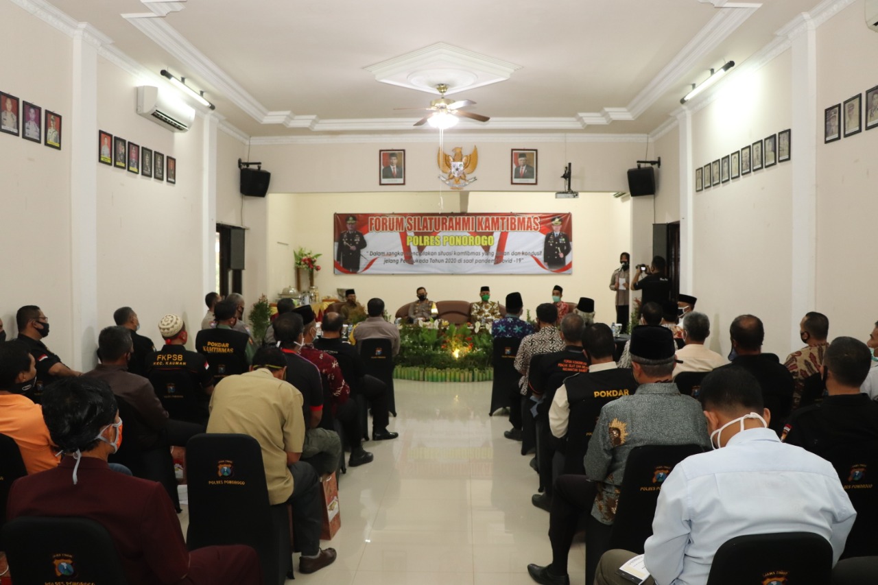 Kapolres Ponorogo AKBP Mochamad Nur Azis menyampaikan, Forum Silaturahmi Kamtibmas ini, merupakan suatu forum untuk menyambung kasih sayang dalam mewujudkan Kamtibmas yang kondusif ditengah pandemi Covid 19 dan menjelang perhelatan Pilkada serentak Tahun 2020 ini.