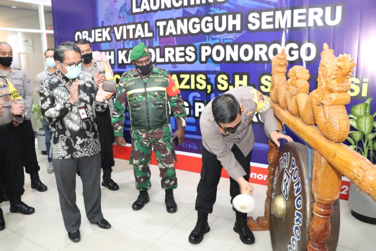 Ponorogo, Seputarkita – Kapolres Ponorogo AKBP Mochamad Nur Aziz SH, SIK, M.Si melaunching Objek Vital (Obvit) Tangguh Semeru di kantor Bank BRI Cabang Ponorogo jalan Soekarno-Hatta, Kamis (30/7).