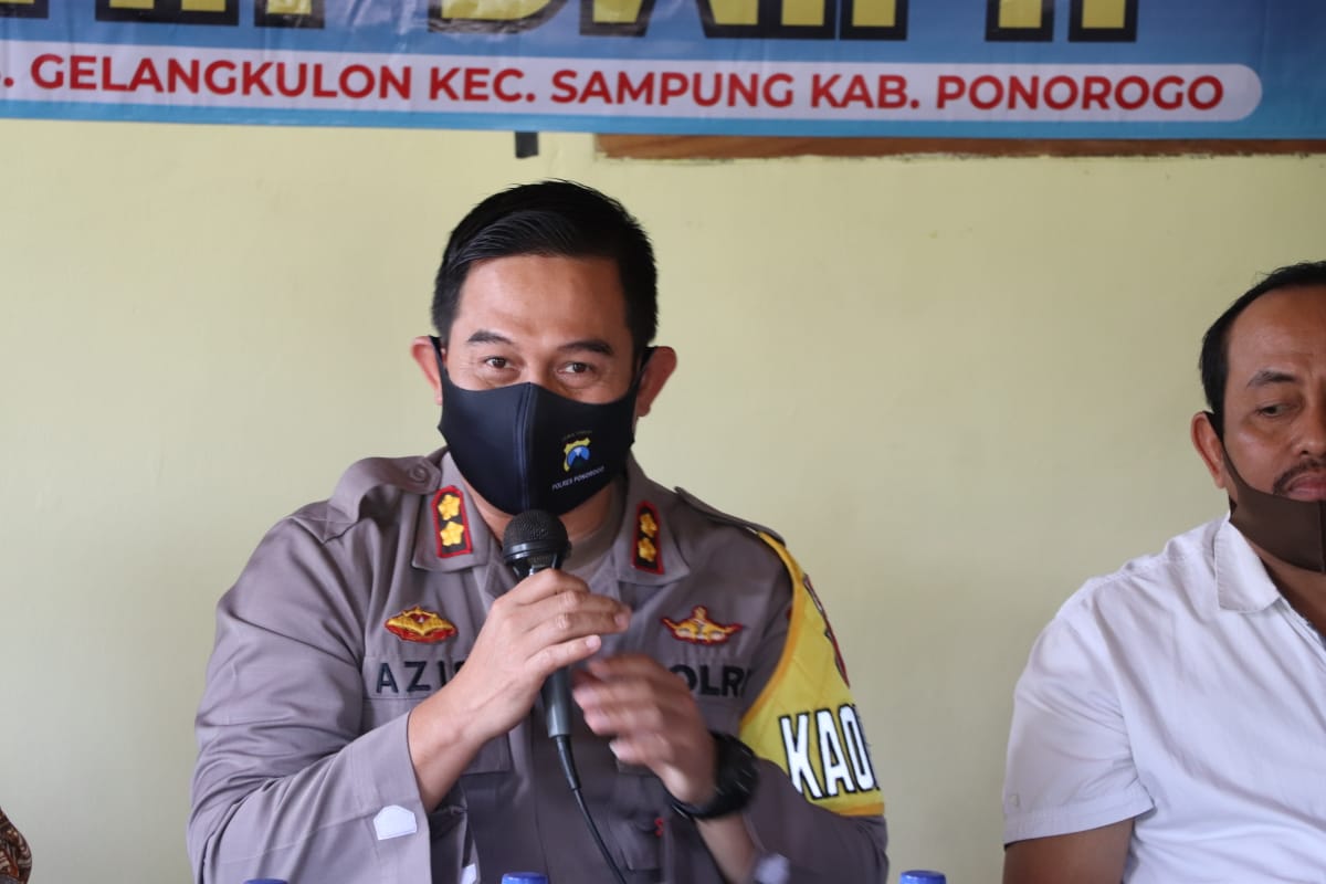 “Saat ini kita sudah masuk dalam tahap New Normal, namun harus tetap memperhatikan protokol kesehatan dengan cek suhu tubuh, cuci tangan dengan sabun, jaga jarak dan tetap memakai masker. Jumlah masyarakat Ponorogo yang sudah positif terpapar Covid19 sebanyak 82 orang, sehingga kita harus tetap waspada dan menjaga kesehatan. Mari kita senantiasa bahu-membahu dan berdoa bersama agar virus Covid19 ini segera hilang dari muka bumi. Dan terkait dengan kegiatan masyarakat seperti hajatan dan resepsi dalam New Normal ini, setiap kegiatan harus mengantongi rekomendasi dari Gugus Tugas Percepatan Penanganan Covid 19 dan tetap memperhatikan protokol kesehatan, “imbuhnya.