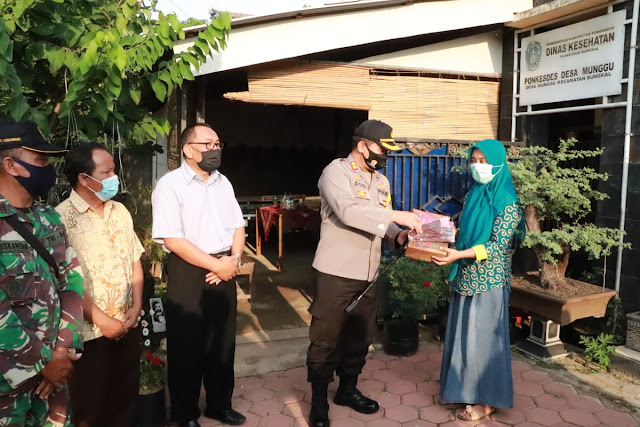 Ponorogo, Seputarkita – Kapolres Ponorogo AKBP Mochamad Nur Azis, SH, SIK, M.Si mengapresiasi dengan memberikan penghargaan petugas medis Desa Munggu Kecamatan Bungkal Kabupaten Ponorogo, atas dedikasi dan loyalitas yang tinggi dalam membantu penanganan Covid 19 di rumah Dinas Bidan setempat, Sabtu (15/8).
