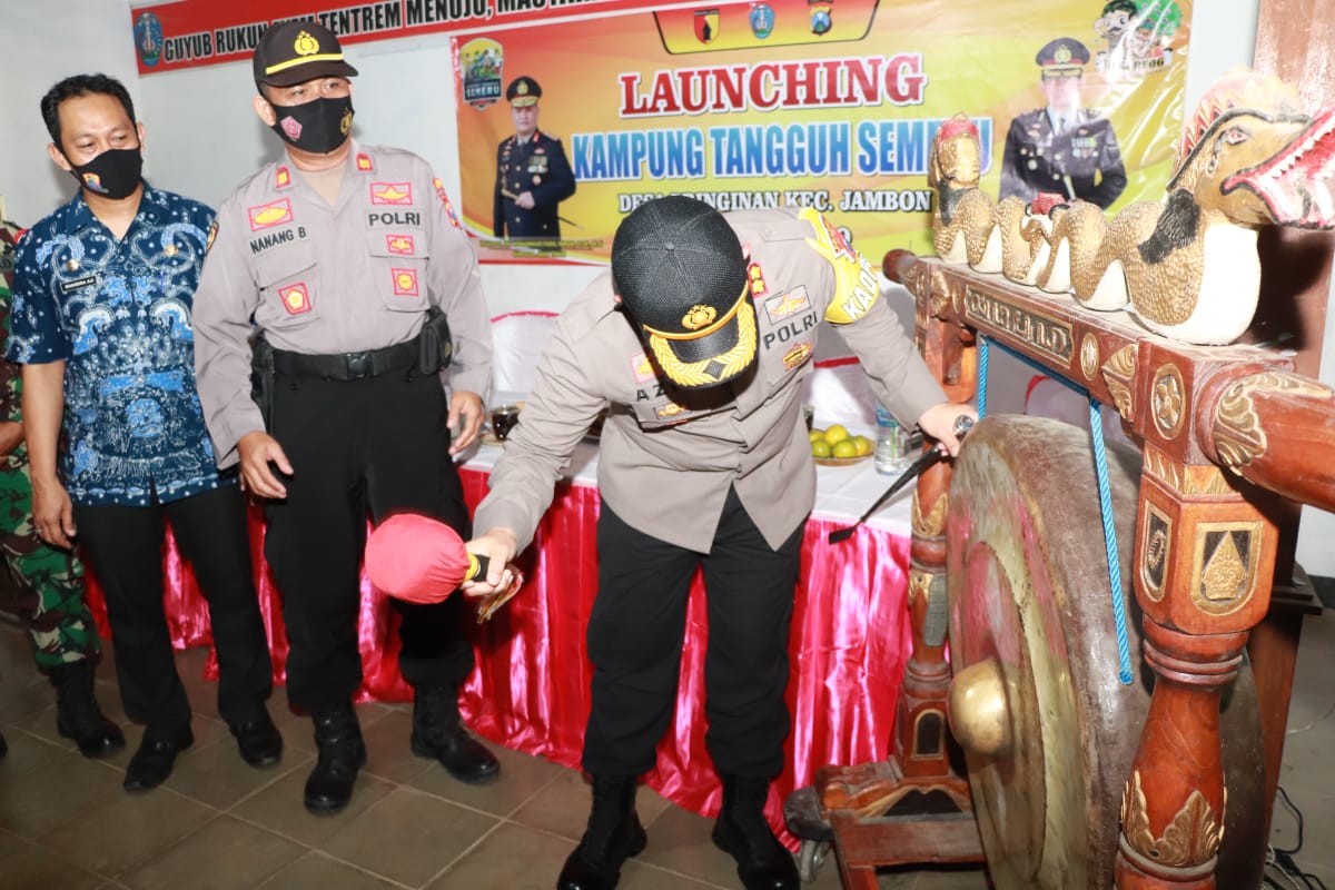 Dalam launching Kampung Tangguh tersebut, ditandai dengan gong dan penandatanganan prasasti irigasi Sumur Pertanian Tangguh Terintegrasi oleh Kapolres Ponorogo, yang dihadiri Pejabat Utama Polres Ponorogo, Kapolsek Jambon Iptu Nanang Budianto, SH, Camat Jambon Sandra Aji, S.STP, Kades Bringinan Subarno dan tokoh agama serta masyarakat setempat.