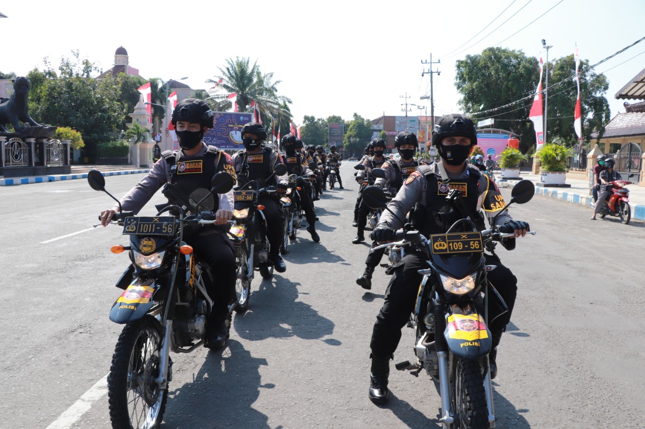 Setelah upacara pengukuhan Unit Patroli Reaksi Cepat (UPRC) Satsabhara Polres Ponorogo, dilanjutkan patroli Show of Force keliling Kota Ponorogo.(sul)