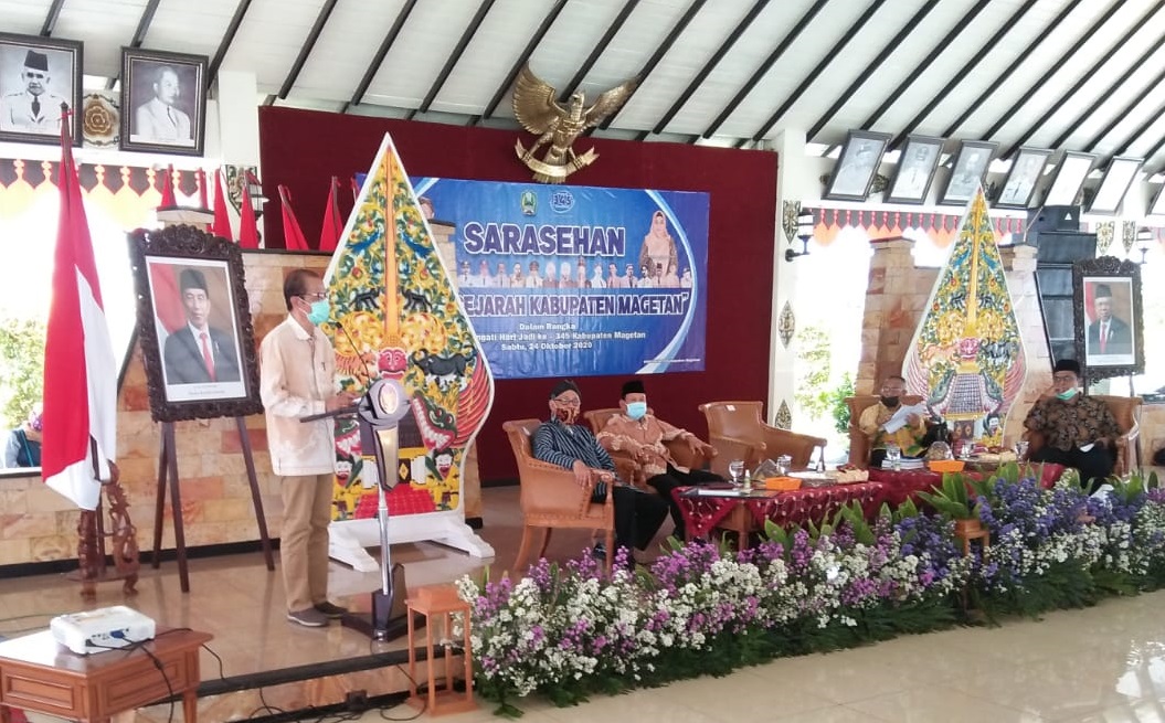 Magetan, Seputarkita – Pemerintah Kabupaten Magetan menggelar sarasehan untuk memperingati hari jadi ke 345 Kabupaten Magetan dengan tema ” Bedah sejarah Kabupaten Magetan” di Pendopo Surya Graha, Jl. Basuki Rakhmat Selatan No.1 Magetan, Sabtu (24/10/2020)