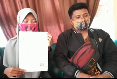 | Dwi Ryanto dan Istrinya Nina Dina Safitri saat mendatangi Posko Pemenangan Paslon Ipong – Bambang untuk meminta maaf |