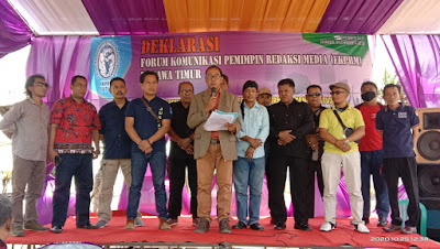 Agung Santoso, Ketua FKPRM Jawa Timur sebagai deklarator yang didampingi para pendiri, pemimpin redaksi membacakan tujuh pernyataan sikap.