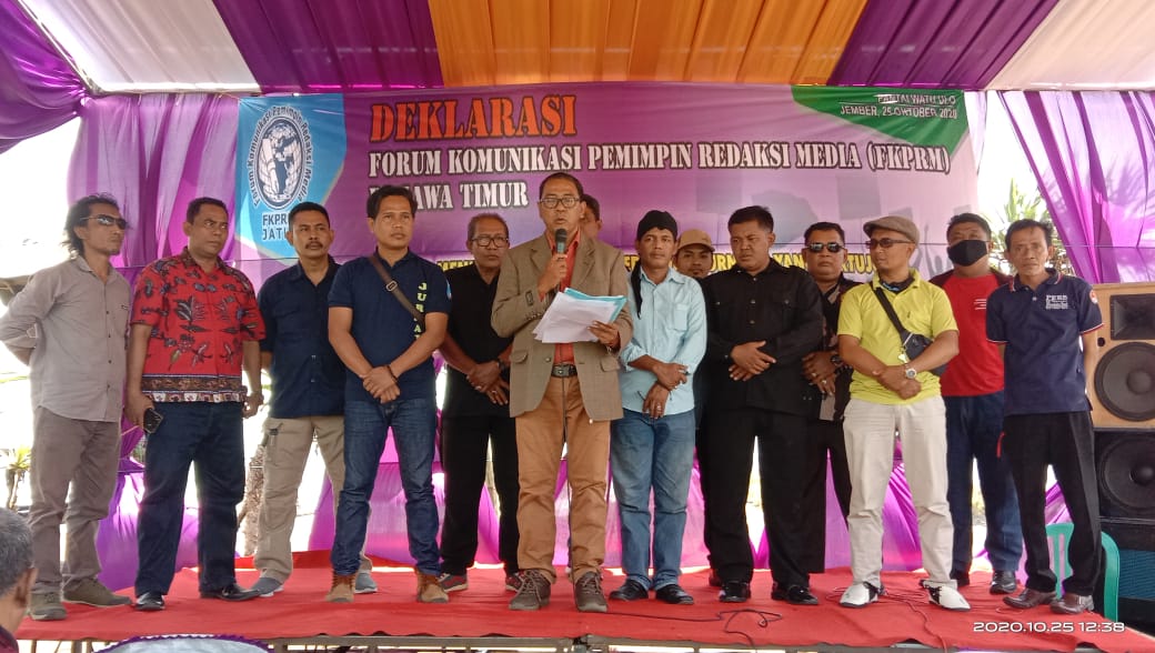 Agung Santoso, Ketua FKPRM Jawa Timur sebagai deklarator yang didampingi para pendiri, pemimpin redaksi membacakan tujuh pernyataan sikap.