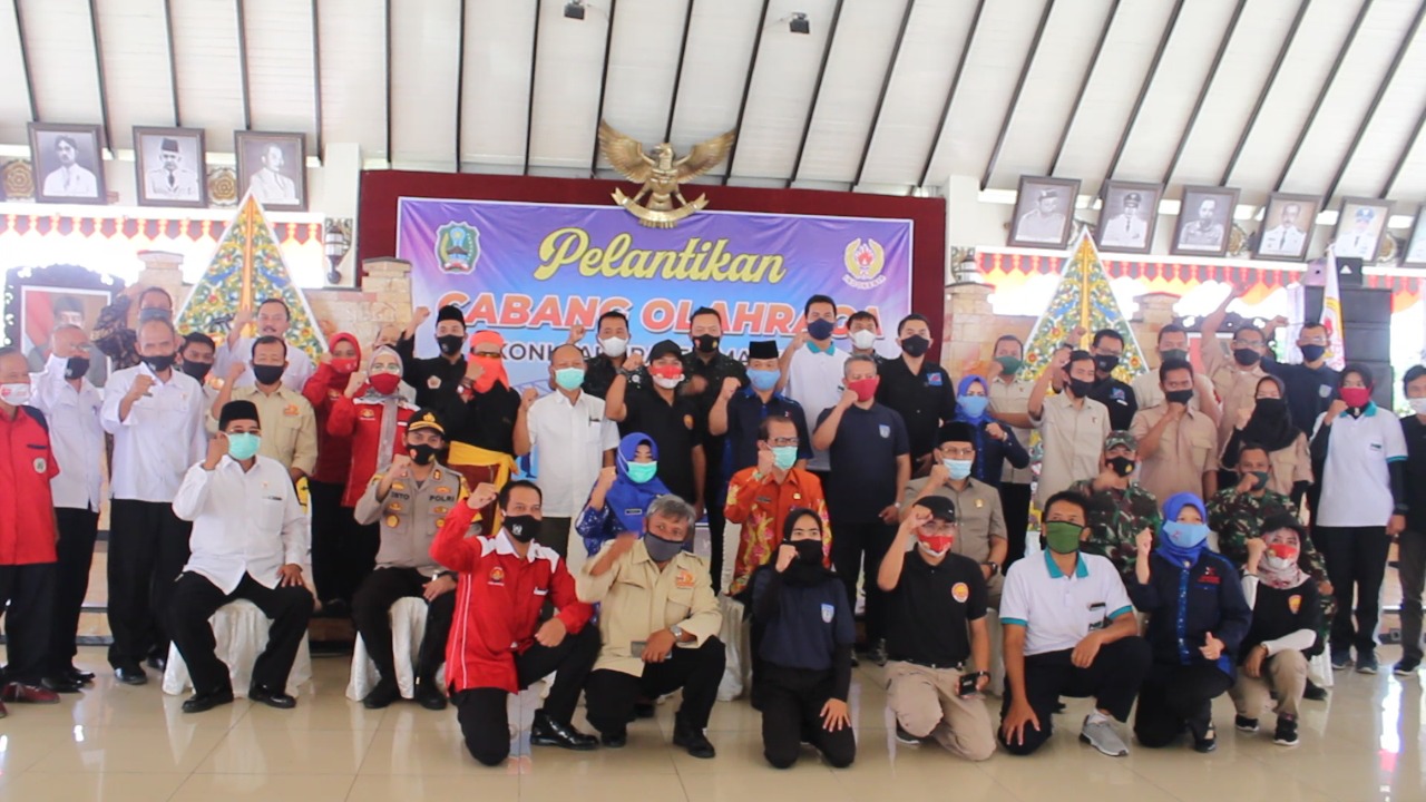 Pelantikan 12 pengurus Cabang olahraga KONI Kabupaten Magetan masa bakti tahun 2020 – 2024 ini berlangsung dengan khidmat dan tetap mematuhi protokol kesehatan yang berlaku.